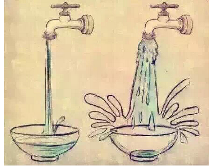 第一題:漫畫題,兩個水龍頭下各有一個碗,水流速度慢的碗將將乘滿,速度快的水花四溢,自擬標題,并談看法。